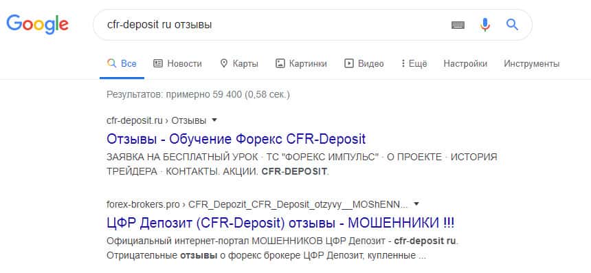 Ввиду крайне сомнительной деятельности мошенников CFR-Deposit на просторах сети интернет проходимцы ЦФР Депозит так и не обзавелись особой популярностью, в связи с чем через раз всплывают совершенно посторонние ссылки, что явно говорит о халтурности данного проекта, который рассчитан на развод наивных пользователей сети интернет.