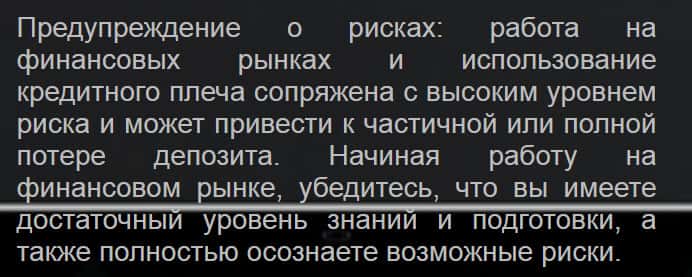Завершается же подвальный сайт у аферистов ЦФР Депозит типичным предупреждением о рисках, в котором мошенники CFR-Deposit отказываются от ответственности за потери наивных пользователей сети интернет, связанные с данным подвальным сайтом, что вы можете наглядно увидеть и прочесть на изображении, расположенном ниже.