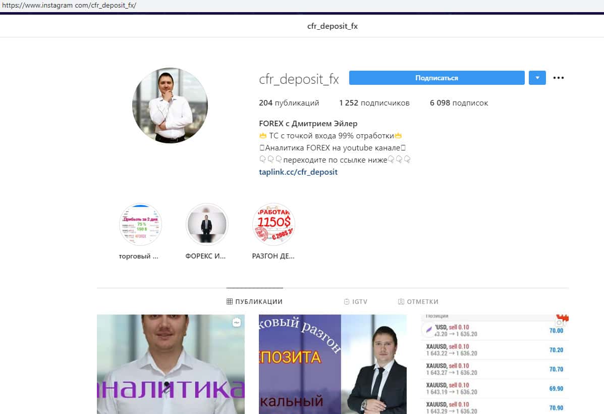 Обзавелись проходимцы CFR-Deposit страницей в нынче популярной социальной сети Инстаграм, где у лохотрона ЦФР Депозит публикуется различного рода лапша на уши, которой мошенники CFR-Deposit пытаются замотивировать наивных пользователей к началу сотрудничества с аферистами ЦФР Депозит, что вы можете увидеть ниже.