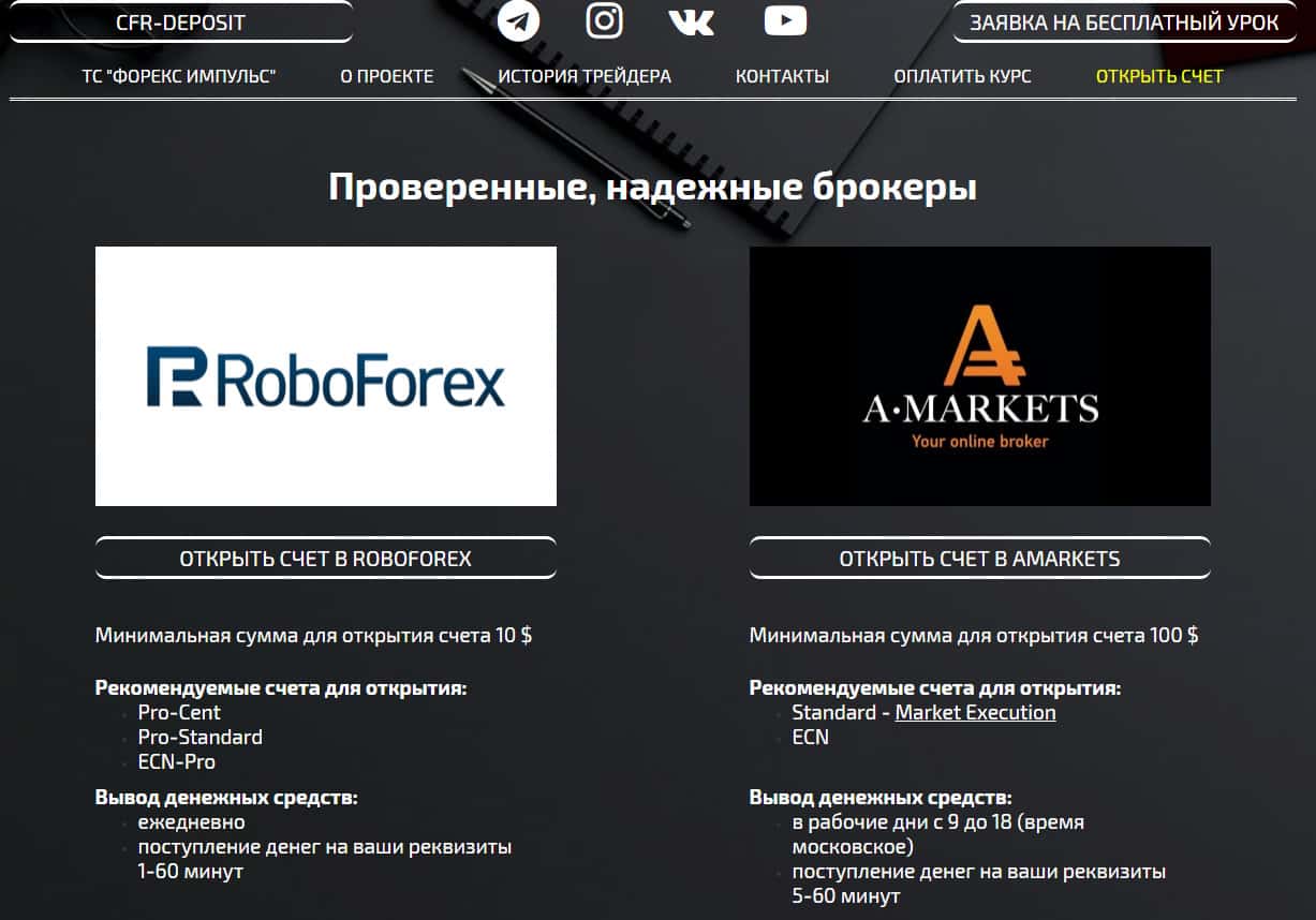 Дабы повысить прибыль своего довольно сомнительного предприятия и привлечь новых клиентов мошенники ЦФР Депозит начали сотрудничать с различными конторами, такими как лохотрон RoboForex, проходимцы А Маркетс. На изображении, расположенном ниже, вы можете даже увидеть упоминание об этом с сайта шулеров CFR-Deposit.