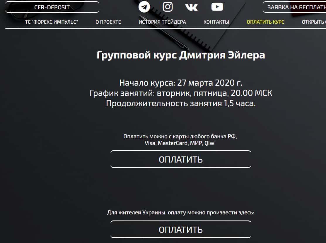 Далее на сайте у лохотрона CFR-Deposit имеется весьма сомнительный раздел, в котором представлен видеоролик с лапшой на уши наивным пользователям, под предлогом обучения очередной "уникальной" стратегии торговли форекс. На изображении, расположенном ниже, вы можете наглядно увидеть следующий раздел подвального сайта шулеров.