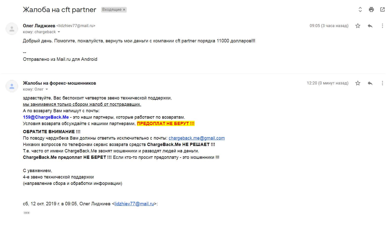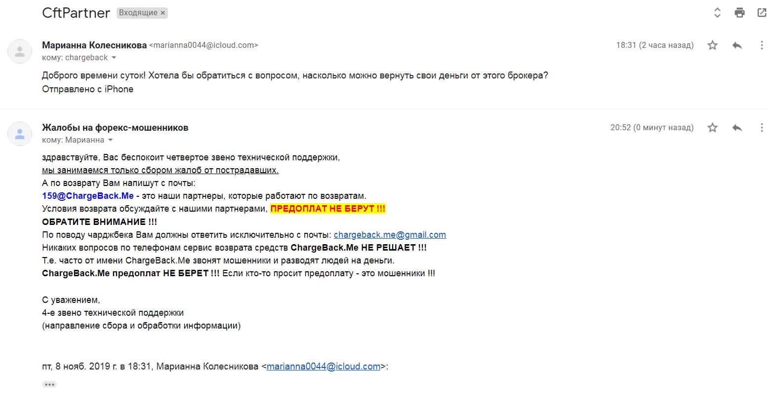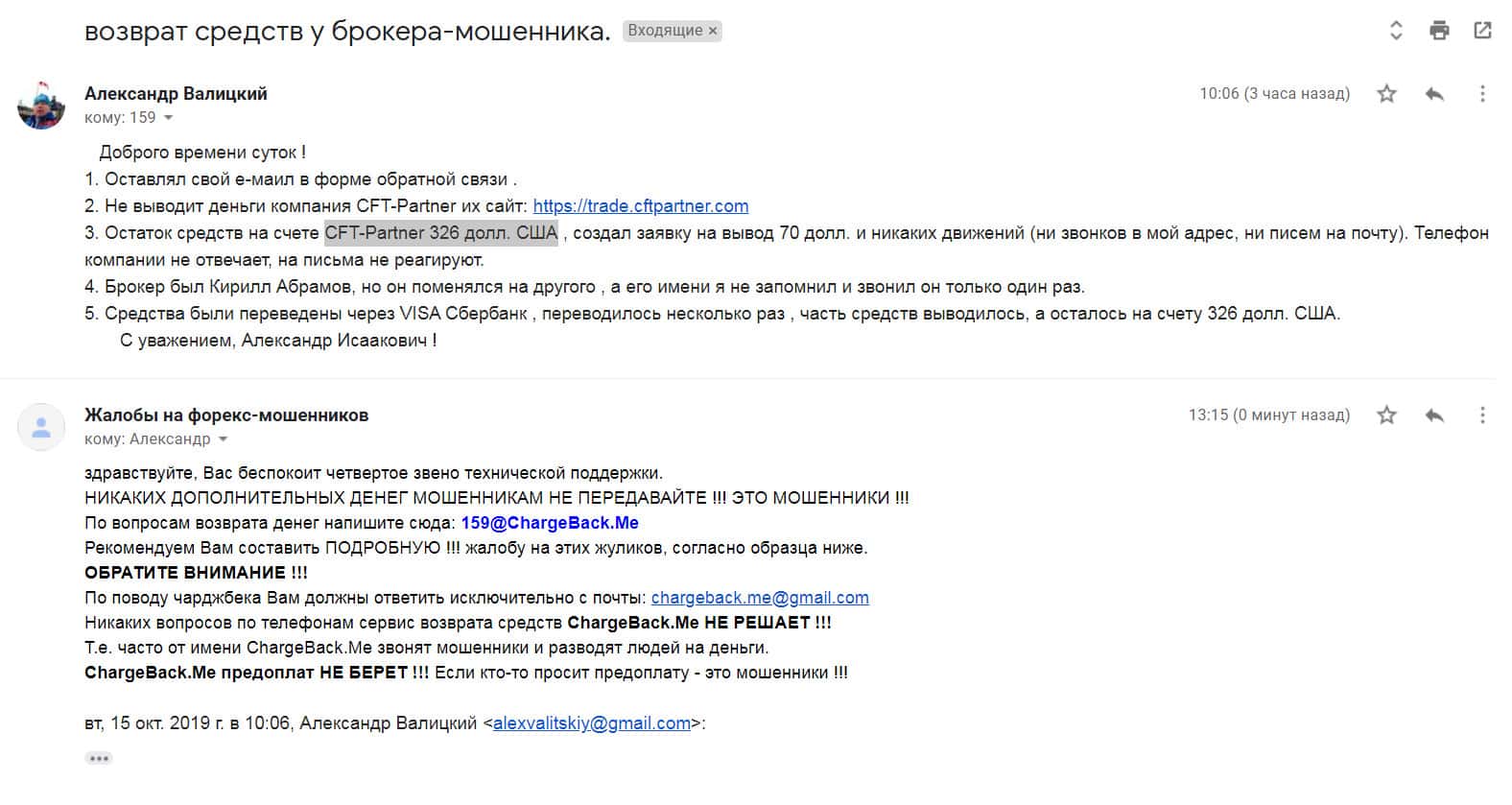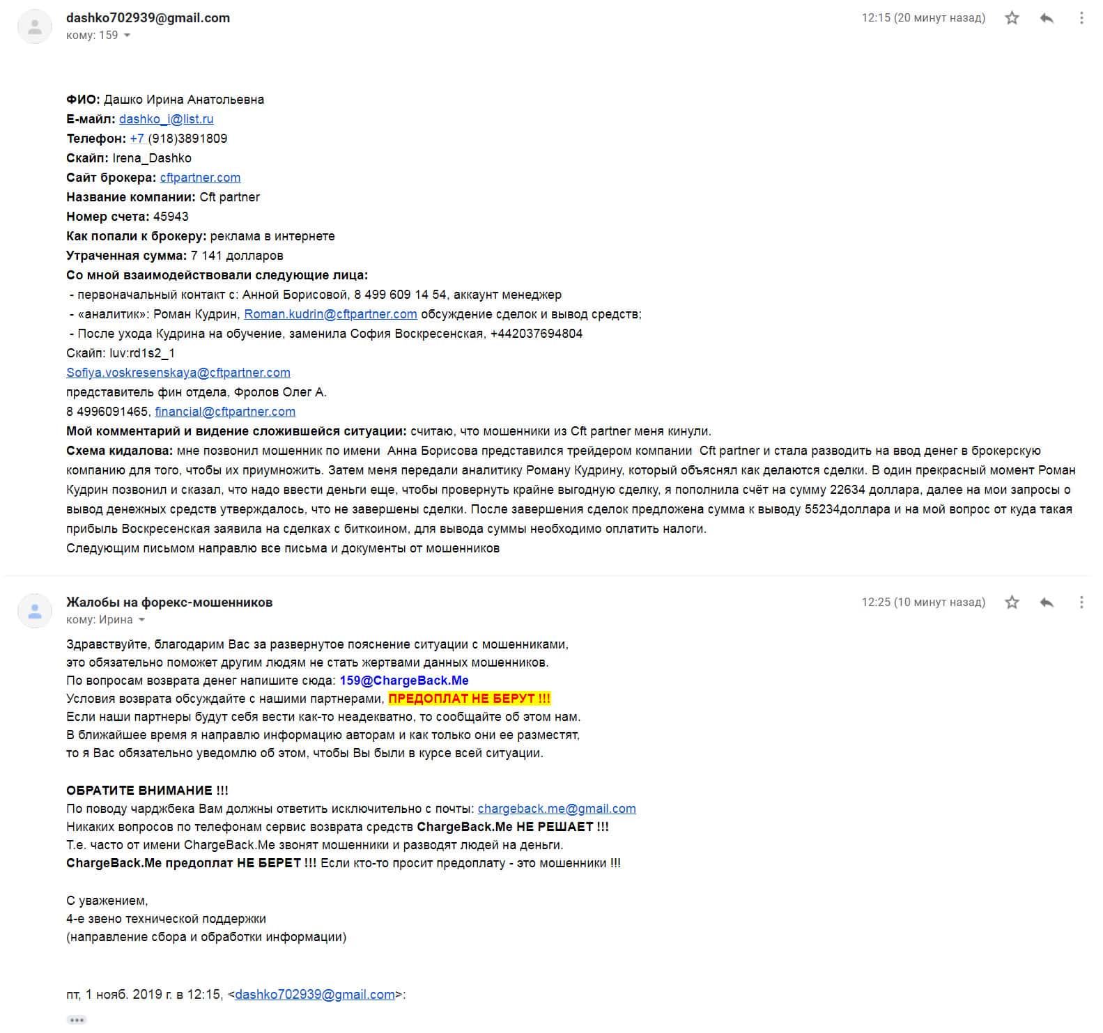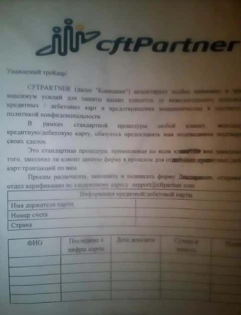 - Подробная жалоба на CFT-Partner, укравших у клиента 7 141$