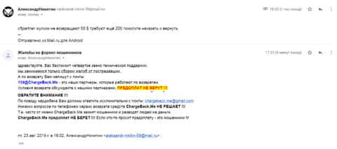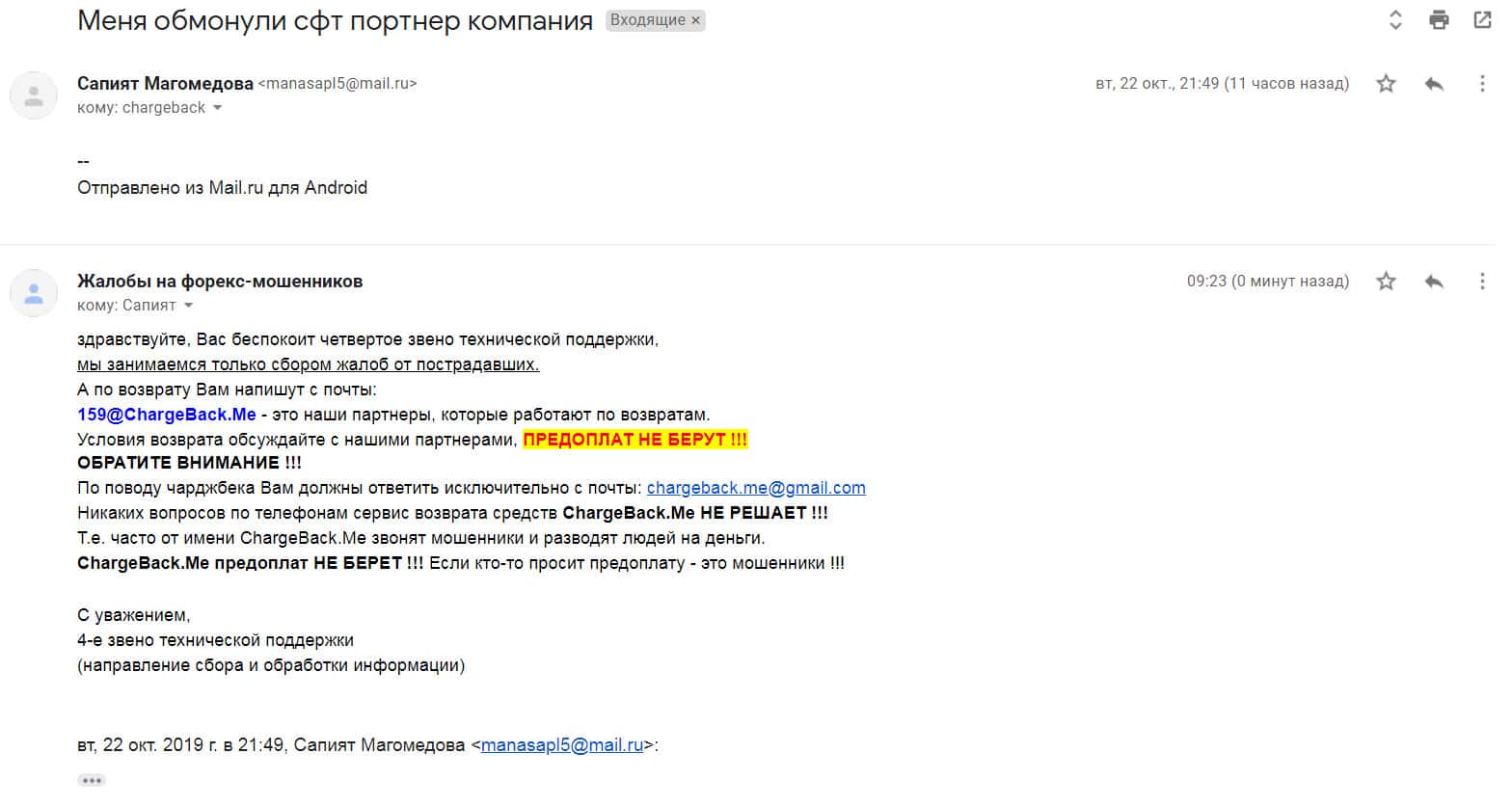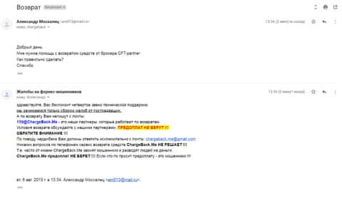 В компанию, которая борется с форекс-аферистами, под названием ChargeBack.Me пришло письмо, в котором зафиксирован факт мошенничества со стороны дилинговой конторы ЦФТ Партнер. Жулики украли у него деньги и требуют повторно пополнить счет, чтобы вывести хотя бы часть денег из уже вложенных.