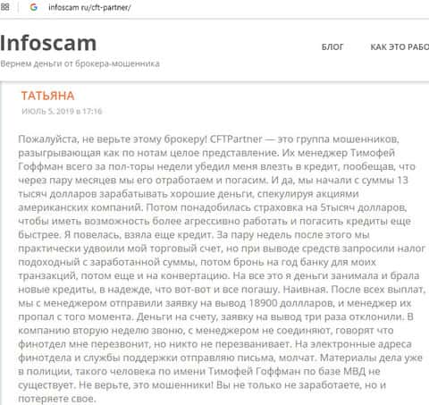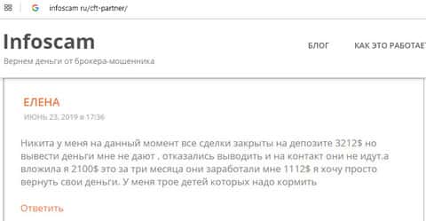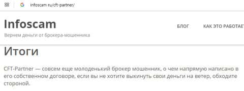 - Infoscam предупреждает, что CFT-Partner - это мошенники