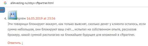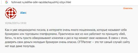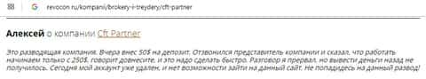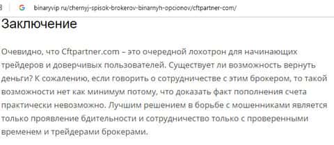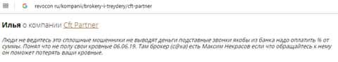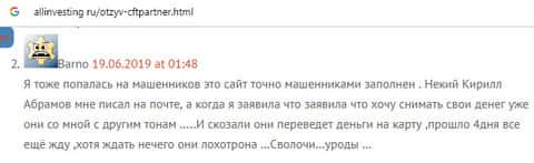- Контора CFT-Partner попалась в негативный обзор еще одного сайта