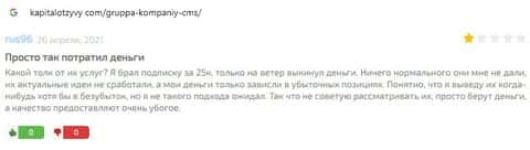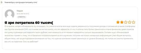 Ниже предоставлена пользовательские отзывы о том, что обманщикам ЦМС Институт доверять не имеет смысла из-за небольшого срока работа.