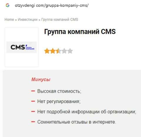 - Отзывы о шулерах CMS Группа Компаний, ныне присутствующие в сети