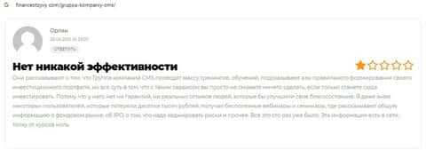 Многие клиенты конторы CMS-Institute рассказывают о том, что нет никакой эффективности от полученных знаний, которые можно найти в бесплатном доступе в интернете.