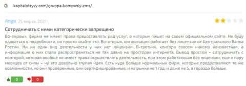 Отзывы о шулерах CMS Группа Компаний, ныне присутствующие в сети