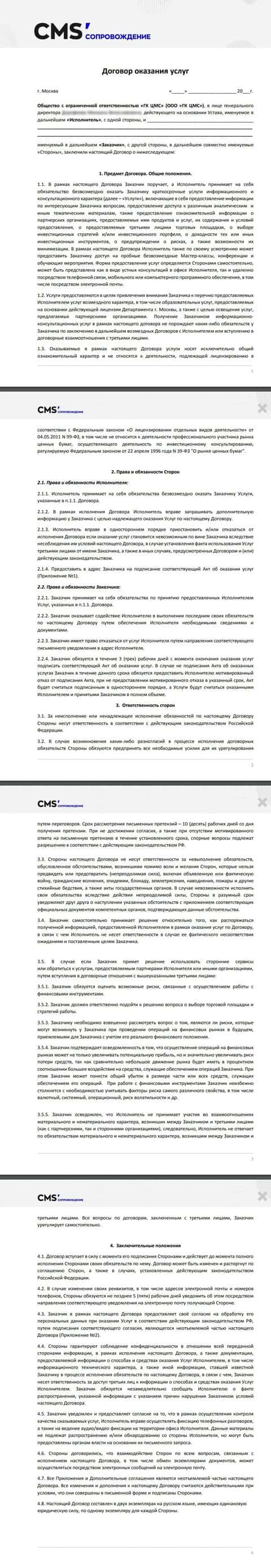 Ниже предоставлена полная версия клиентского соглашения скам-организации CMS Группа Компаний, которое является подтверждением того, что перед нами очередной лохотрон.
