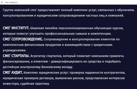 - Информация о консалтинговой скам-организации CMS Группа Компаний