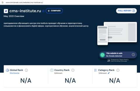 При проверке источников бренда по странам лохотрона ЦМС Институт на сайте similarweb com, информация отсутствует, что является признаком фейковой компании.