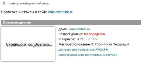 - Информация о возрасте домена скам-компании ЦМС Институт