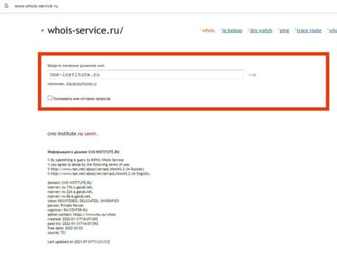 Данные о владельце домена шулеров ЦМС Институт отсутствуют