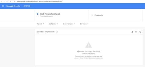 Вероятнее всего на Гугл Трендс никто из пользователей не искал бренд полного названия компании "CMS Группа Компаний".