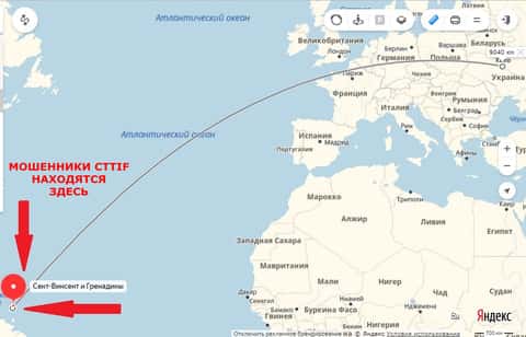Выясняется, что сидят проходимцы конторы ЦТТИФ на островах Сент-Винсент и Гренадины, где соскамленные клиенты уж точно не смогут их достать никакими способами. Адрес жулья следующий: Кингстоун Сент-Винсент West Indies, почтовый ящик 356, здание Reigate, этаж 2.