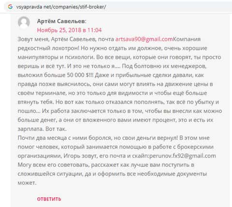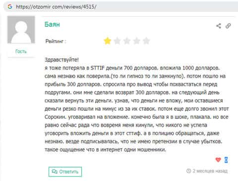 Далее предлагаем ознакомится с информацией в виде жалобы на мошенников СТТИФ и Леон Инвест, которые путем обмана вытянули у доверившегося жуликам человека 1000 американских долларов.