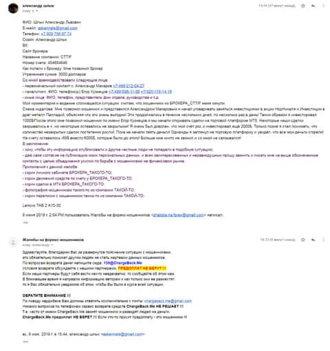 Мошеннический лохотрон ЦТТИФ довел человека до того, что он написал развернутую жалобу в организацию ChargeBack.Me чтобы те попробовали вывести порядка 3000 долларов, которые аферисты украли. Далее представлены все данные о мошенниках, которые причастны к данному преступлению: