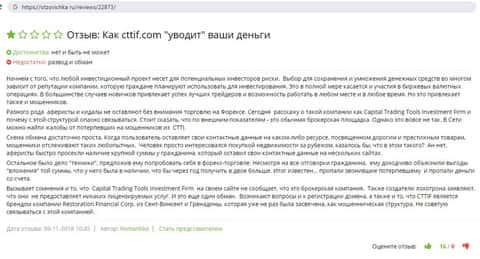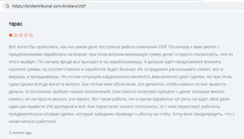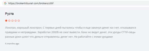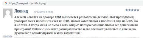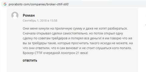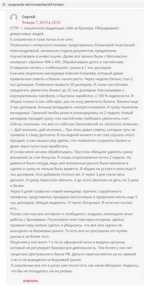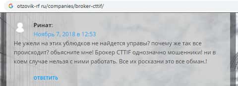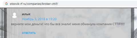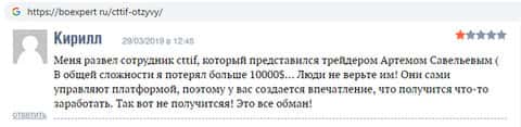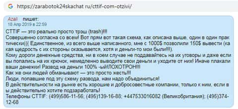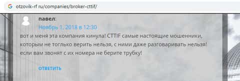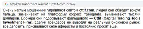Очередной правдивый отзыв о нечестных методах CTTIF