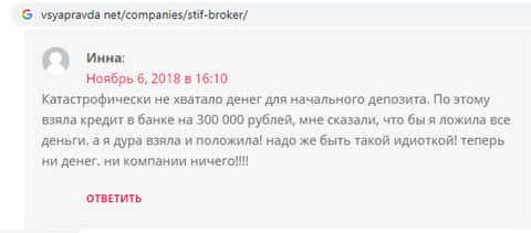 Эту женщину бандитам ЦТТИФ получилось развести на 300 тысяч российских рублей. Инна пишет, что взяла деньги в кредит. Теперь наивная клиентка осталась с кучей долгов и не выплаченным кредитом, а мошенники спокойно смылись с ее денежками на острова.