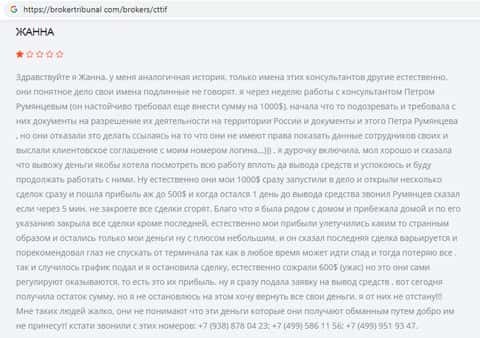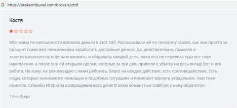 - Очередной отзыв от облапошенной клиентки CTTIF