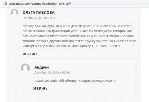 - Очередной правдивый отзыв о нечестных методах CTTIF