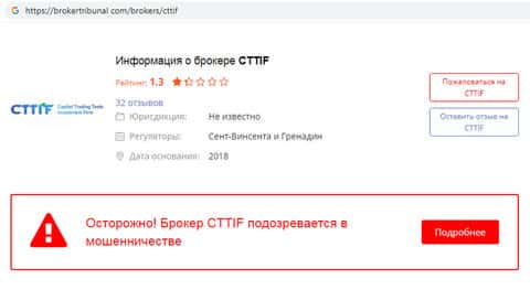 - Брокер Трибунал также записал ЦТТИФ в мошенники