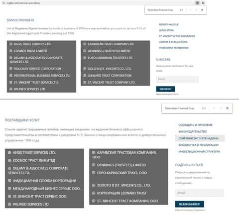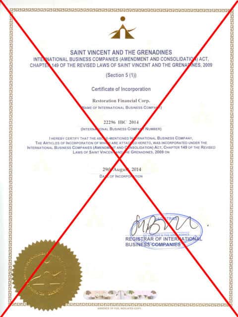 На портале шарашки CTTIF утверждается, что контора имеет лицензию на Сент-Винсент и Гренадинах. Открывая ссылку, видим, что это вовсе не разрешение на брокерскую деятельность, а лишь бумага об инкорпорации, то есть открытии компании. О регуляции брокера здесь нет и речи.