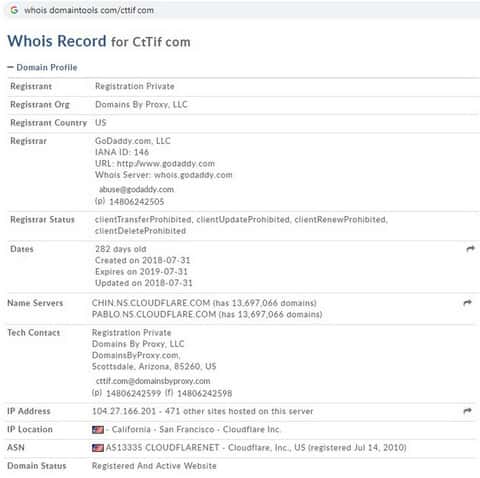 Очередная ложь от мошенников CTTIF - дата основания. В регистрационном сертификате указан 2014 год, тогда как создана компания на самом деле даже менее 1 года назад. Сервер располагается в США, что опять же наводит на подозрения в честности данного недоброкера.