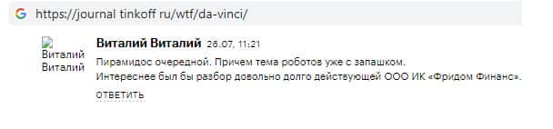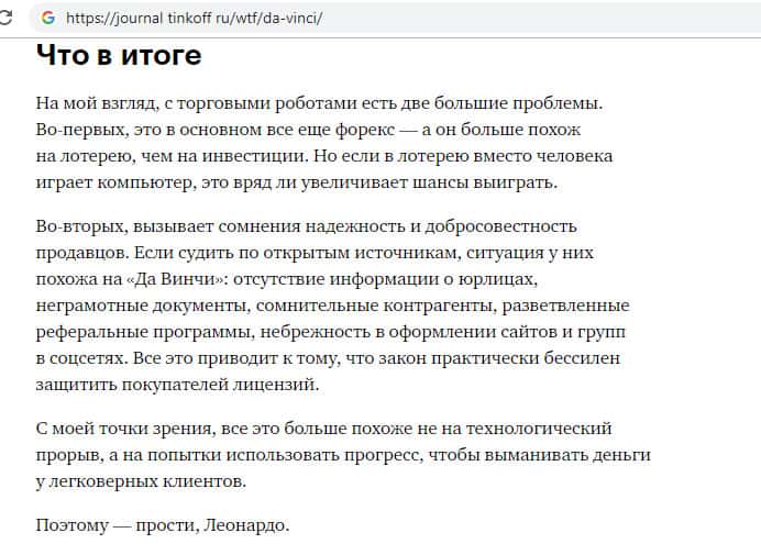 Вывод о форекс лохотроне Da-Vinci PRO на сайте journal tinkoff ru