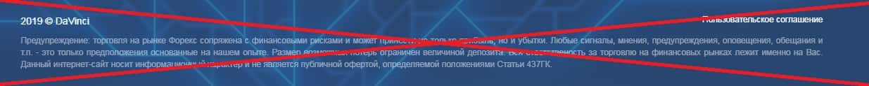 Данная брокерская кухня под названием Да Винчи Про имеет кипрскую прописку, что делает ее незаконной работающей организацией на территории Российской Федерации.