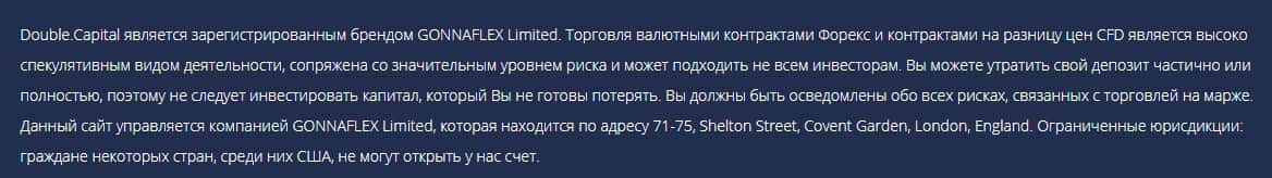 Мошенническая контора Double Capital является зарегистрированным брендом GONNAFLEX Limited, которая расположена на территории Великобритании.