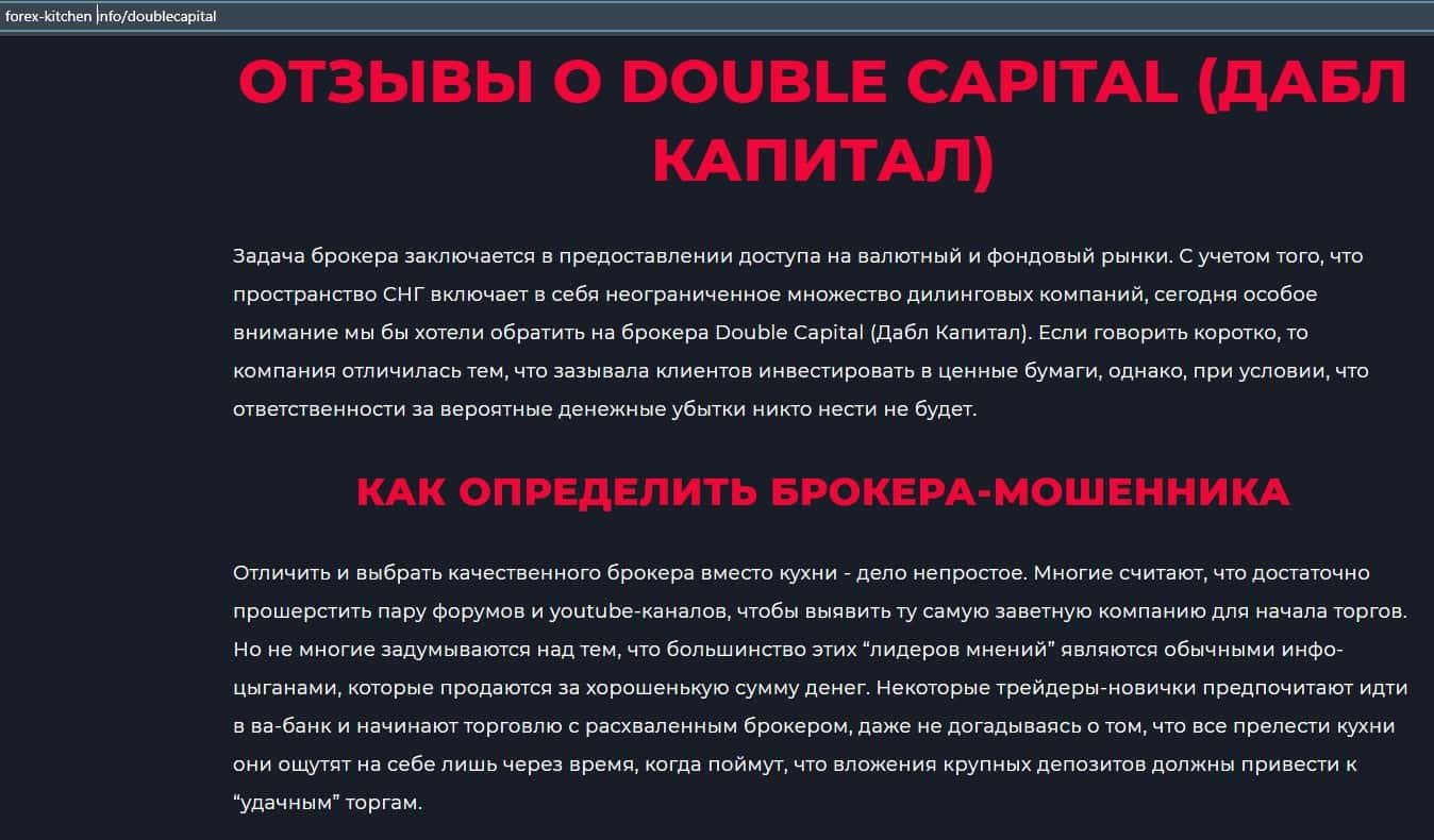 Далее представлена информация о конторе Double Capital, а конкретно расписаны все признаки, которые утверждают, что данная организация является мошеннической.
