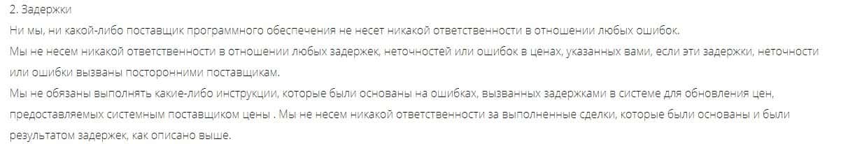 Контора Дабл Капитал также утверждает, что они не будут нести ответственность за то, что клиент понесет убытки, из-за неправильных котировок, что доказывает их кухонность.