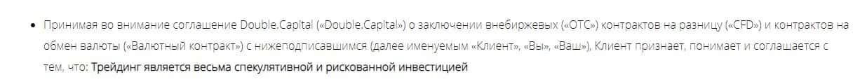 Далее представлена полная версия договора мошенников Double Capital, где каждый клиент может увидеть все подвохи, которые ожидают его при сотрудничестве с ними.