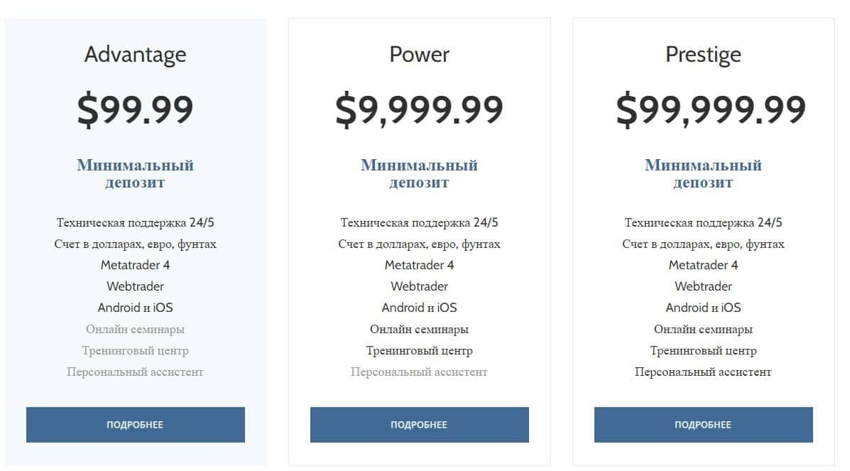 Ниже представлены типы счетов, которые указывают на то, что Дабл Капитал - это форекс-кухня. На самом деле реальный форекс стартует со 100 000 долларов, а не со 100 как здесь.