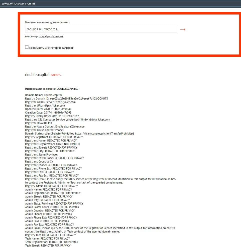 Как оказалось, владелец сайта конторы Дабл Капитал просто скрыт, так как он не хочет появляться на публику, дабы не отвечать за свою лживую деятельность.