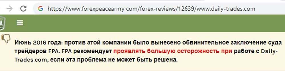 Кидалы Дейли Трейдерс вопрос с лицензией обходят стороной, что и не удивительно. Они утверждают, что исключительно по доброте душевной делают обзоры, делятся советами и раздают промокоды. На самом деле у мошенников Daily-trades лицензия была, выданная FPA и в 2016 году после судебного разбирательства она была аннулирована.