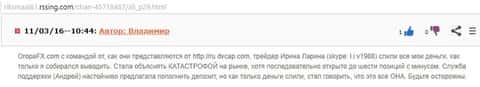 Еще одну историю рассказал один автор отзыва, который описал схему как работают жулики ДаВинчи Капитал и OropaFX. Звонит некая девушка по имени Ирина Ларина по скайпу l.i.v1988, и представляется трейдером конторы Da Vinci Capital. После того как клиент ведется на ее уговоры и вносит деньги на торговый счет, то тут сразу же начинаются торги. Заканчивается все жто действо катастрофой на рынке и все открытые позиции становятся минусовыми. Когда потерпевший обратился в службу поддержки, где отвечал аферист Андрей, то ему предложили вложить еще денег. Вот такой замкнутый круг у шарлатанской конторы ДаВинчи Капитал.