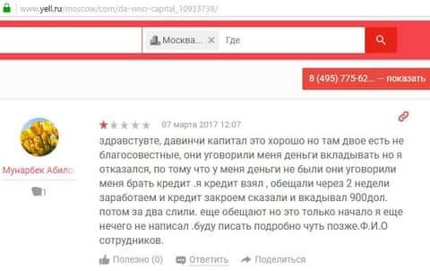 - Отзывы опрокинутых людей брокерской конторой ДаВинчи Капитал