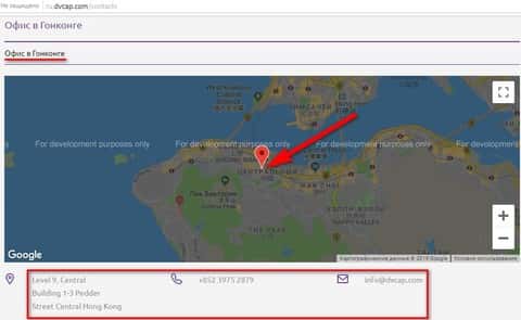 Ну и напоследок данные шарашкиной конторы Da Vinci Capital в Гонконге. Здесь не указывается как зарегистрирована контора. Скорее всего это просто офис по отмыванию денег через оффшорные структуры. Контакты помойки в Гонконге: