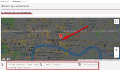 Что касается офиса брокерской кухни Da Vinci Capital в Великобритании, то здесь совсем другие данные и ниже она представлена: