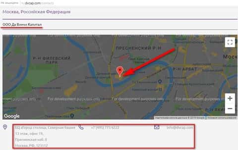 И куда же без России! Здесь черный брокер ДаВинчи Капитал также расположил свой офис и ведет свои преступную деятельности по отношению к нашим соотечественникам. Ниже представлены точные данные конторы: