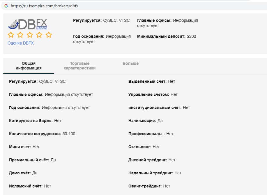 На информационном веб-портале fxempire com была отыскана информация о главных недостатках сайта мошеннической организации DBFXTrades. Были обнаружены все признаки мошенничества, а так же полного несоответствия тому, что шулера указывают на своем официальном сайте.