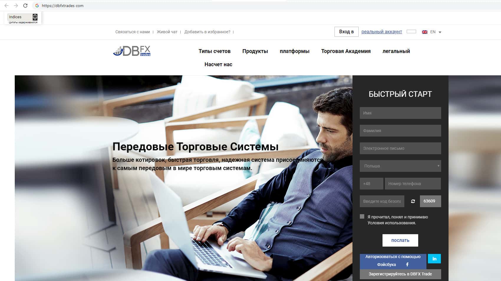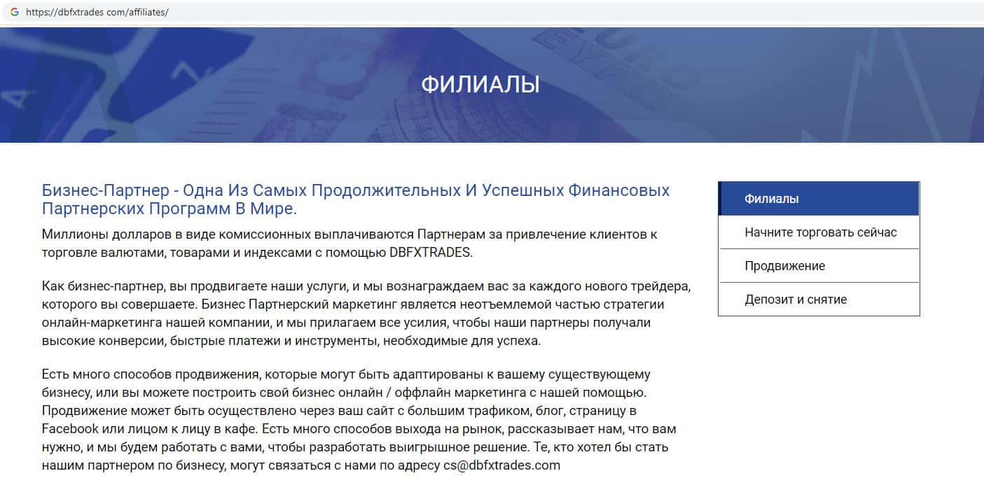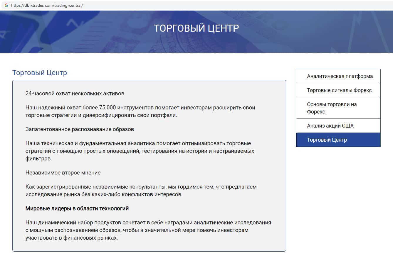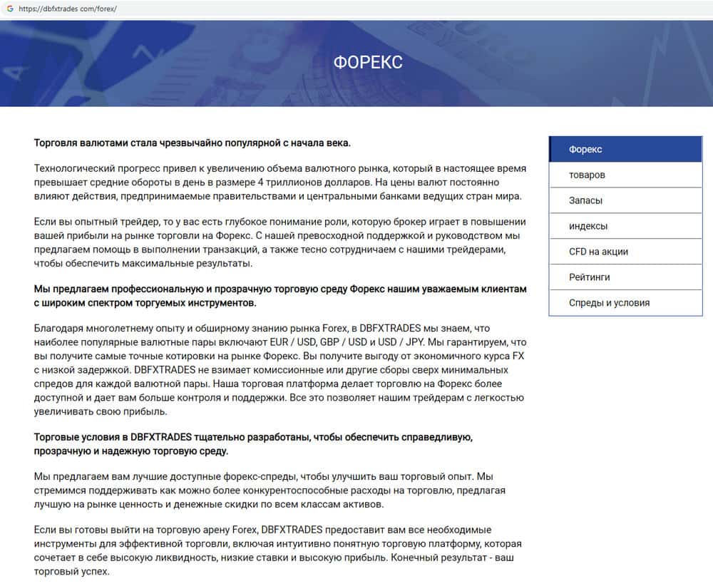 - Обзор официального интернет-ресурса мошеннической организации DBFXTrades