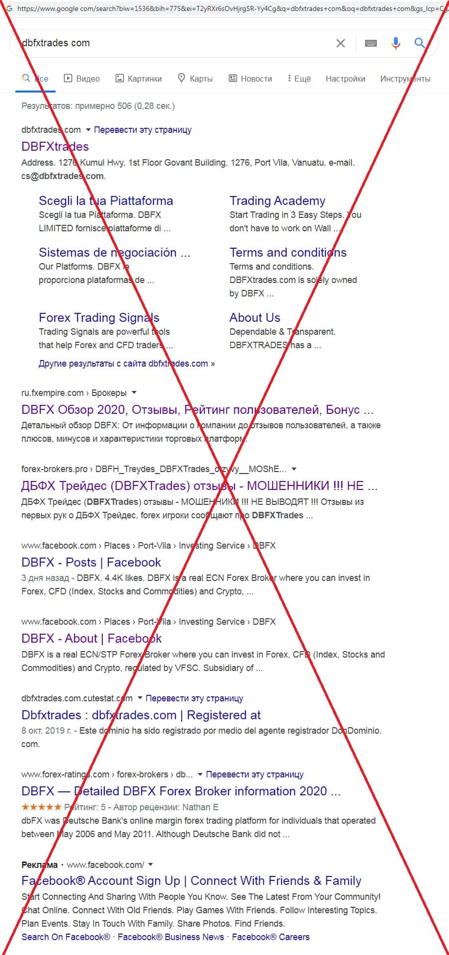 В глобальной интернет сети отзывов о жульнической организации DBFXTrades не было найдено. Скорее всего это произошло потому, что данная компания возможно подчищает ненужную им информацию в сети и удаляет какие-либо негативные отзывы об организации. Поэтому не рекомендуем связываться с шулерами ДБФХ Трейдес !!!