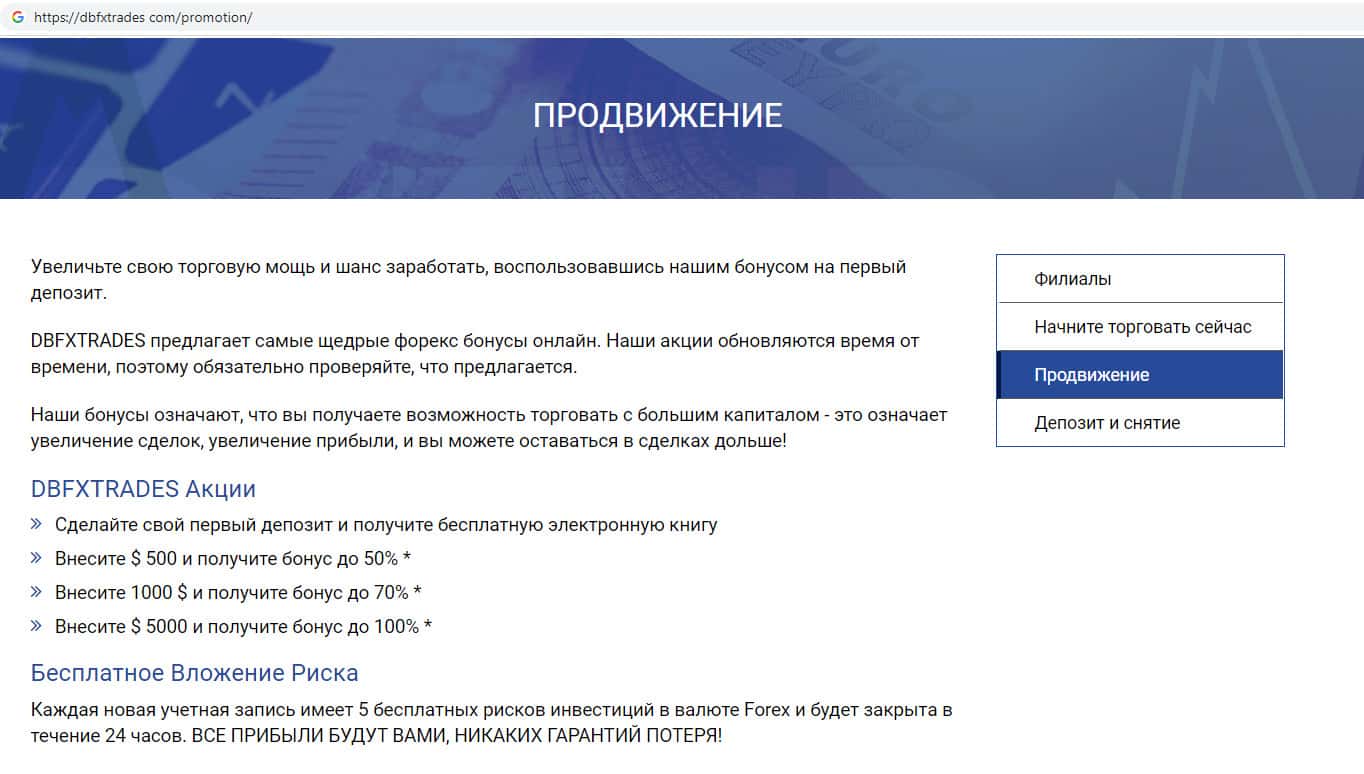 - Бонусная программа на онлайн-сервисе жульнической конторы ДБФХ Трейдес