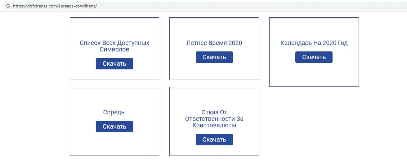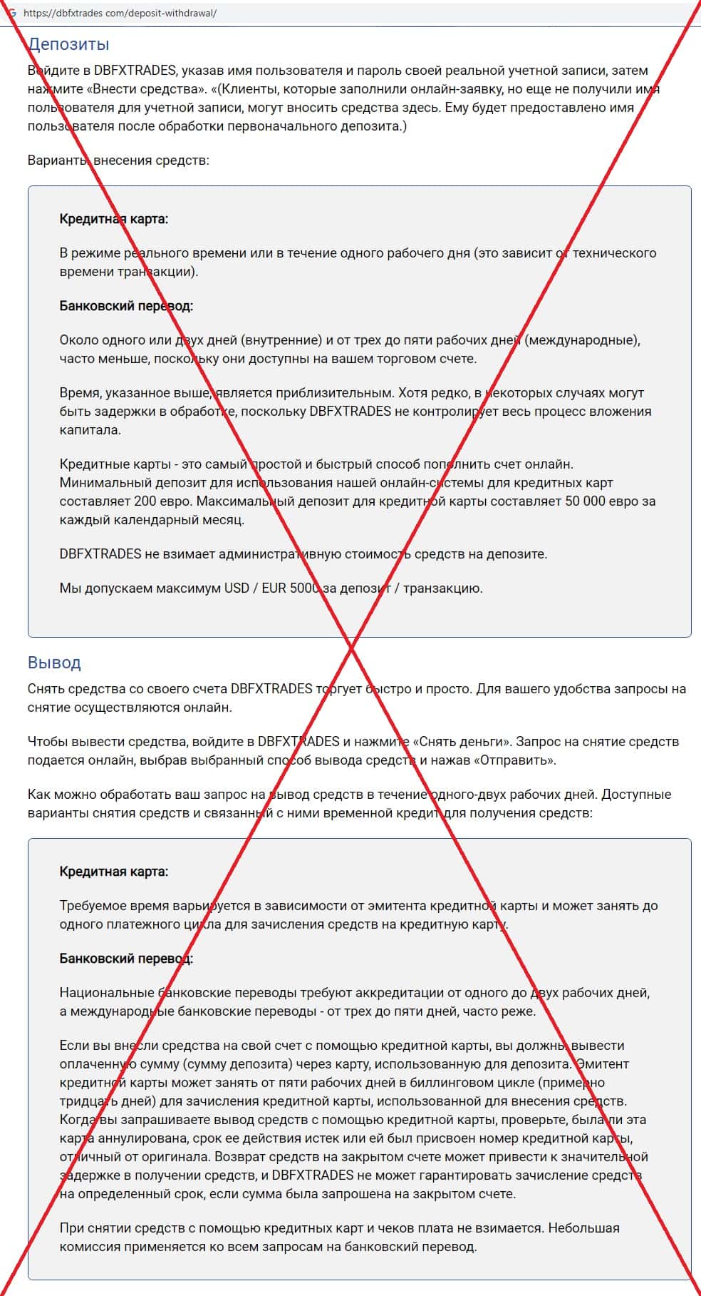 - Условия пользования сайтом мошеннической организации DBFXTrades
