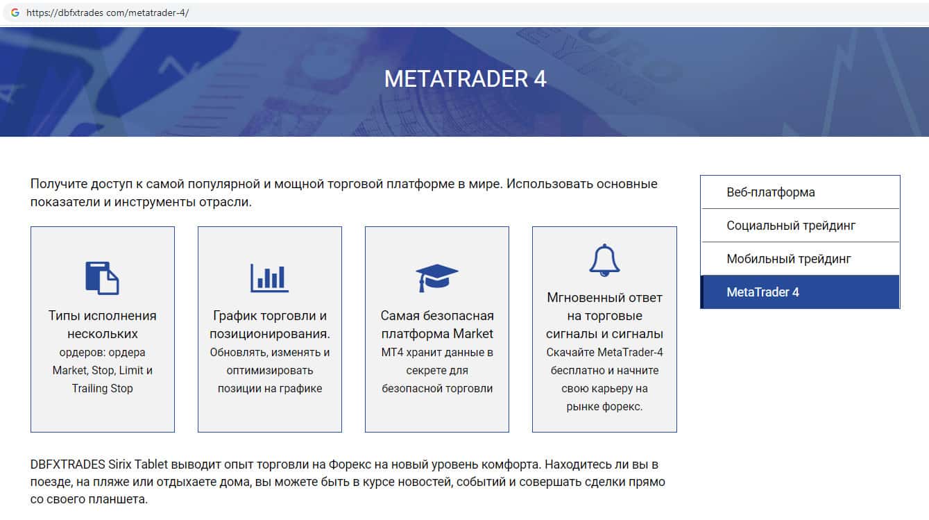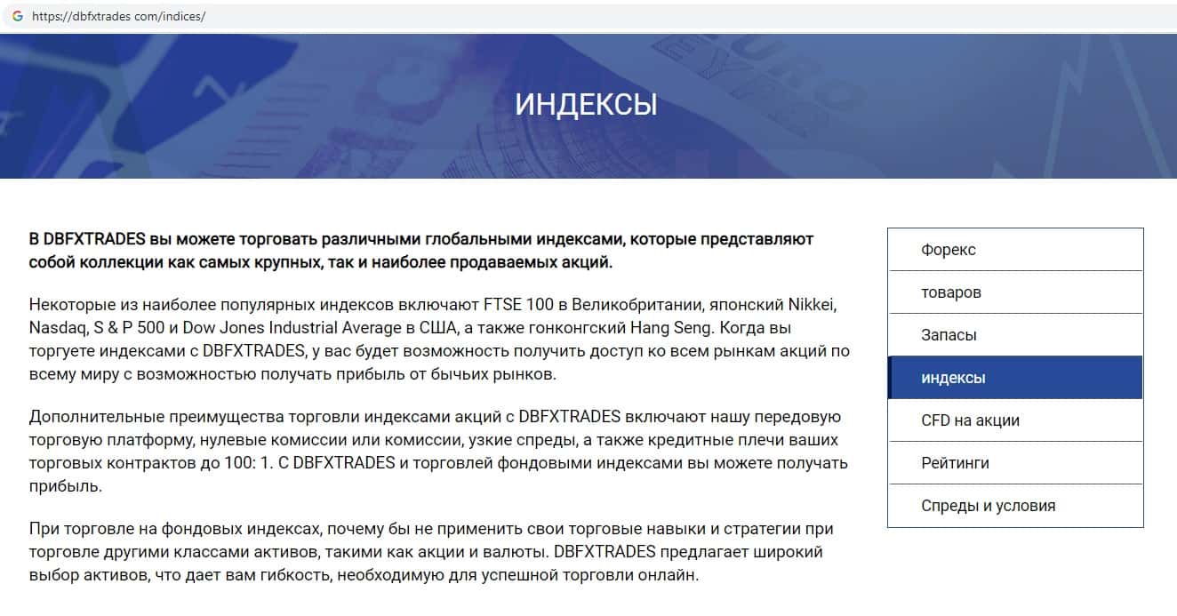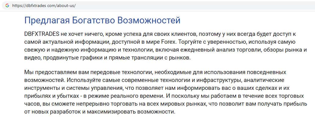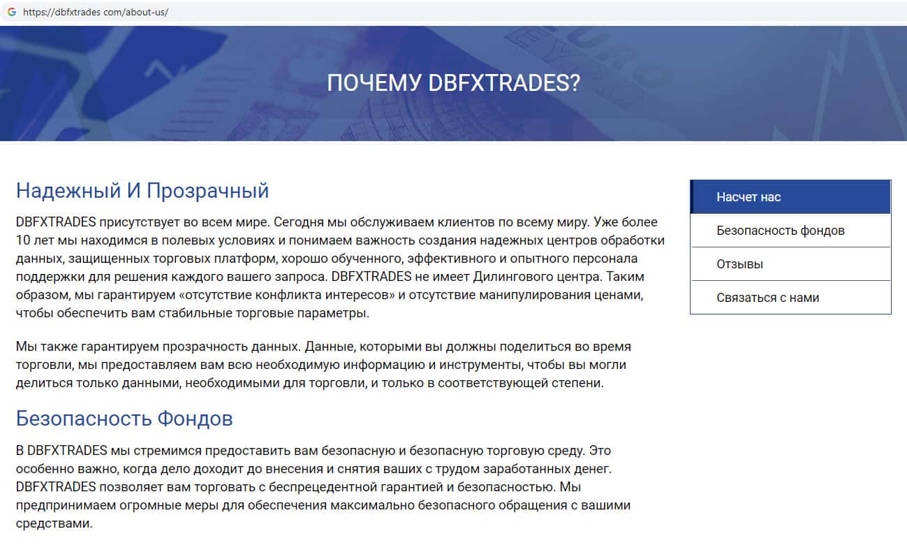 Обзор официального интернет-ресурса мошеннической организации DBFXTrades