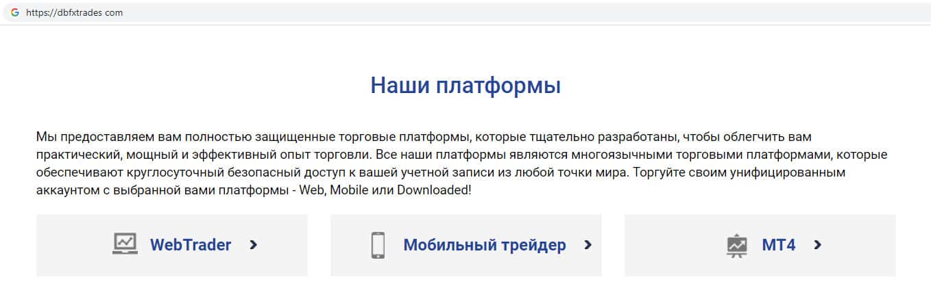 Торговая платформа на дырявом сайте псевдо-брокерской конторы DBFXTrades